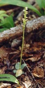 Dwarf Rattlesnake Plantain Orchid (Goodyera repens) is dependent on mycorrhizas (Rhizoctonia lanuginose) that live within the plant’s roots and are given protection by the plant. Before the orchid has begun to photosynthesize, the fungus provides it with carbon. When the plant is mature, the mycorrhiza will mainly provide the nutrients.