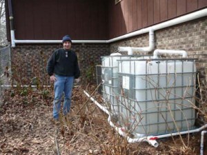 This is a picture, taken in January of 2008, shows the first tanks that were put in and the connections to the downspouts.