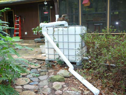 This system is a work in progress. I hope to paint all the tanks and PVC pipe and use a wood lattice fencing to cover the highest tank in the back yard. I have planted vines to help cover the tanks. None of this system is visible from the street and all tanks are located in the back area of the lot.