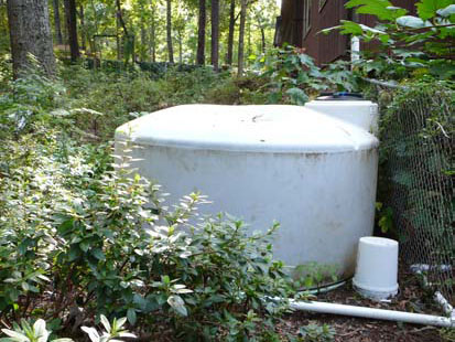 The rainwater collection system is comprised of one, 250-gallon tank, two 350-gallon tanks, one 1100-gallon tank, and three rain barrel collection stations. The tanks are all connected and drain downhill. Each tank can be opened and closed depending on how the water collection progresses. The whole system can be drained if necessary. Each of the tanks has a filter and is easy to clean.